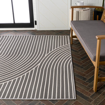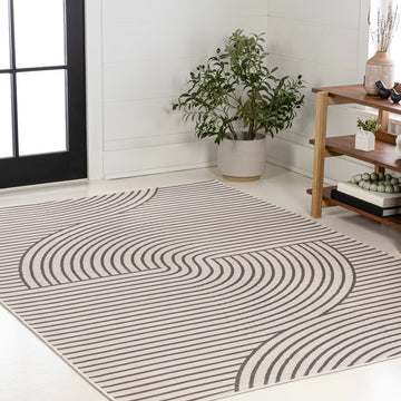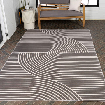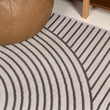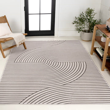 Arielle Mid-Century Modern Curve Stripe Reversible Machine-Washable Indoor/Outdoor Area Rug