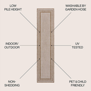 Inspired by traditional styles, our border rug has wide and narrow stripes with a plain center field. It's woven from durable synthetic fibers in a two-tone design. Use this easy-care, family-friendly rug on the porch or deck, or in high traffic spaces like a living room or entry.