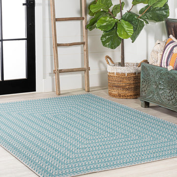 Add modern style to your mid-century bungalow, beach cottage or farmhouse with our unique geometric rug. This durable low pile rug features concentric squares woven in a graphic chevron pattern. This pet-friendly rug will add punch to your living room, dining room, bedroom, or porch.