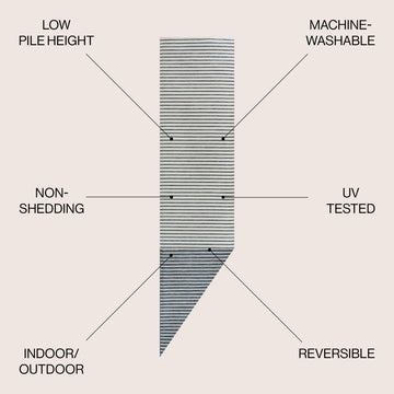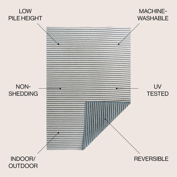 Inspired by nautical stripes, this traditional rug features a classic two-tone pinstripe. Mingled threads give this easy-care, reversible rug a relaxed coastal vibe. Durable enough for outdoors on a porch, or in the living room, entry, bedroom or dining room.