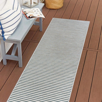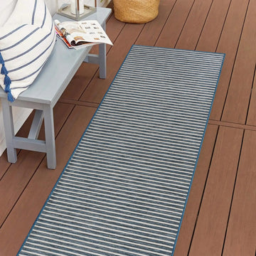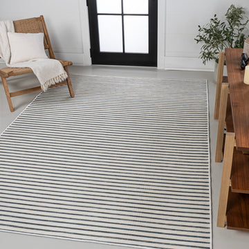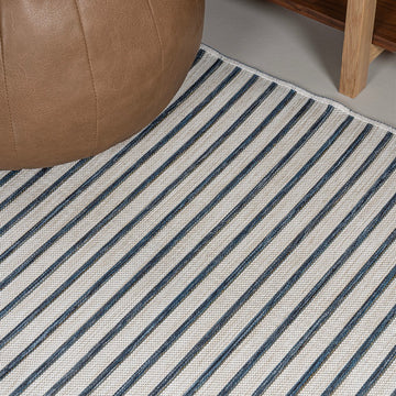 Damon Classic Coastal Pinstripe Reversible Machine-Washable Indoor/Outdoor Area Rug