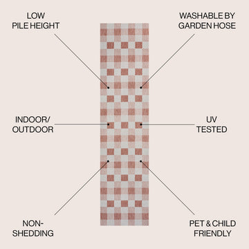 Our modern version of a gingham rug is inspired by traditional French Country designs. It's made from durable polypropylene fibers woven into an updated geometric pattern. Use this easy-care rug outdoors on a porch, or in the bedroom, living room or dining room.