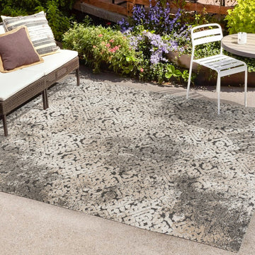 This unique rug combines shabby chic damask with modern glam for a distressed and overdyed look. The busy pattern is a family-friendly addition to the living room, dining room, bedroom, porch or patio. Made from pet-friendly synthetic fibers, this rug is easy to clean.