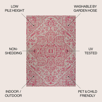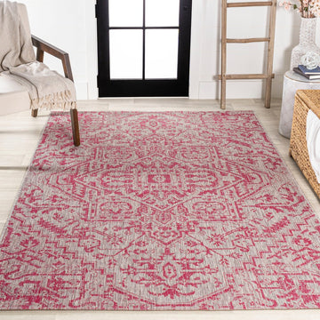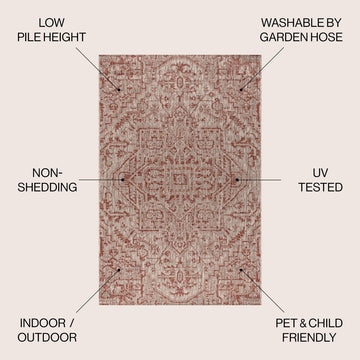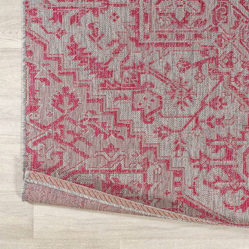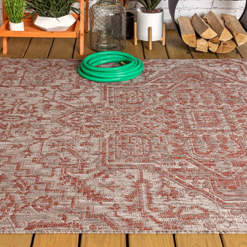 With its star-inspired medallion, this borderless rug adds dreamy Bohemian style to an outdoor porch or patio. Varied tones of red and rust on a mingled gray background give this rug a hand-woven, vintage vibe. The flatweave design is great for high-traffic spaces indoors too.