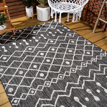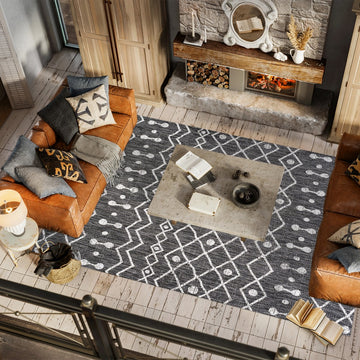 Moroccan influences abound in the geometric design of our tribal-inspired rug. The ornate diamond pattern has the handwoven look that adds a global chic touch. Add Bohemian flair to your living room, dining room, bedroom, kitchen or entry with this easy-care rug.