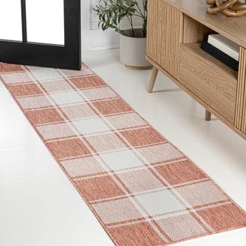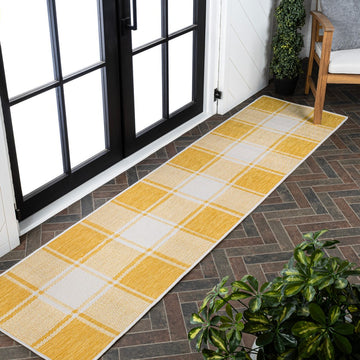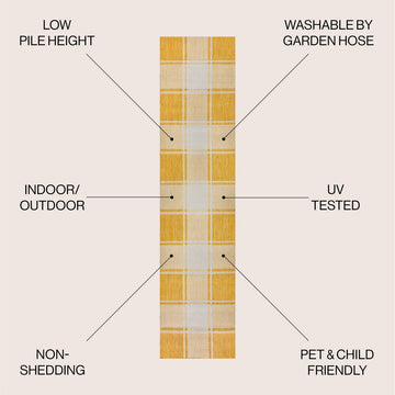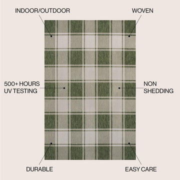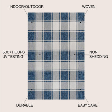 Our updated version of a classic gingham rug is inspired by traditional cottage designs. It's made from durable polypropylene fibers woven into an large scale pattern. Use this easy-care rug outdoors on a porch, or in the bedroom, living room or dining room.