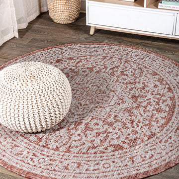 Sinjuri Medallion Textured Weave Indoor/outdoor Round Rug