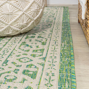 This ornate medallion rug's lively pattern adds exotic style to an outdoor porch or patio. Varied tones of red and rust mingled with a taupe pattern give this rug a hand-woven, vintage vibe. The flatweave design is great for high-traffic spaces indoors too.