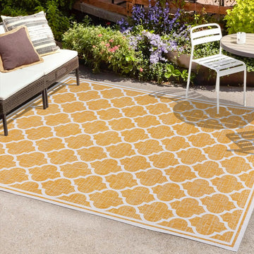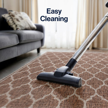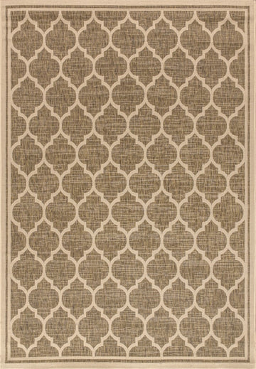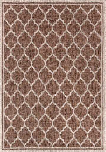 Our popular geometric design is inspired by Moroccan tile patterns. This classic rug adds eclectic style to an outdoor porch or patio. Mingled tones of deep brown with a beige ogee trellis pattern give this rug a hand-woven texture. The flatweave design is great for high-traffic spaces indoors too.