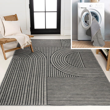 Zephyr Mid-Century Modern Arch Stripe Reversible Machine-Washable Indoor/Outdoor Area Rug