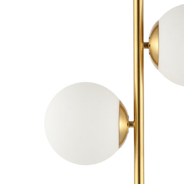 - This Art Deco-inspired orb table lamp has a brass finish and frosted glass globes for bright ambient light