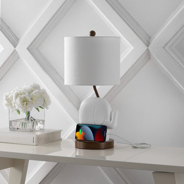 Ellie Bohemian Designer Iron/Resin Elephant LED Kids Table Lamp with Phone Stand and USB Charging Port