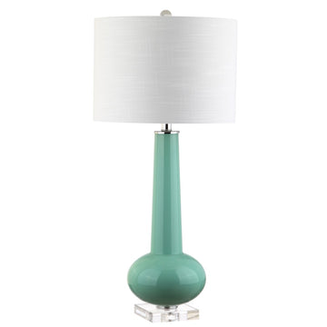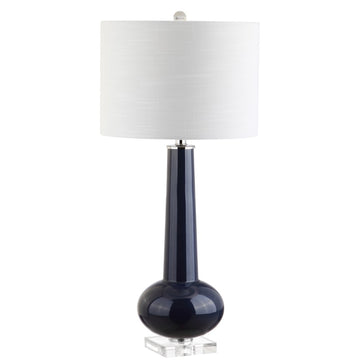 The refined teardrop shape of this 31" table lamp, combined with a classic linen drum shade, create a compelling blend of traditional and contemporary design that is well suited to a variety of design styles. Accented with chrome-plated fittings, a crystal base and a finial to match, the clean lines of this light fixture will add a fashionable and functional touch to any home.