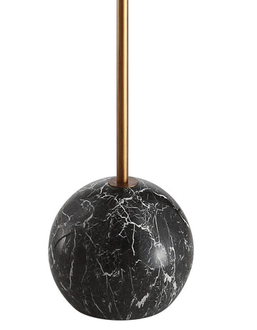 "Shibumi" is a word the Japanese use to describe elegant simplicity, and this lamp exemplifies both those features. Simple in design, with a minimalist brass column, tapered shape, and geometric sphere base, the high quality materials make it not only simple, but elegant. Cast resin creates a solid, heavy base with a marble-like effect, while brass plating shines in contrast. Keeping the style classic, a coolie tapered cotton shade completes the look.