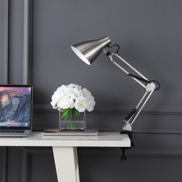 - Quality touches include a rotating metal shade, adjustable table clamp and in-line switch