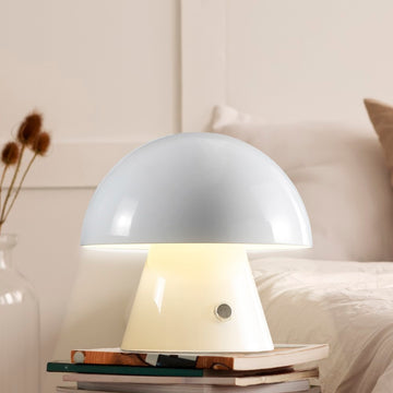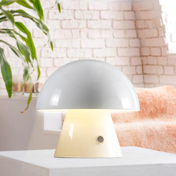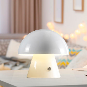 Channel your inner minimalist with a portable mini mushroom lamp. It's the perfect modern accent light for a console or vanity. This cordless, rechargeable lamp provides dimmable mood lighting for your bedroom, dining room, living room, or entry. The durable metal design features integrated LED bulbs and a touch sensor to control the three brightness settings.