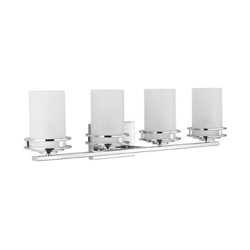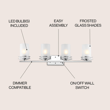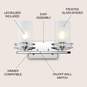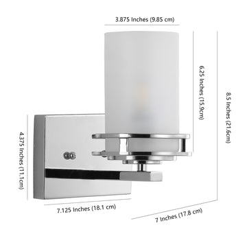 Bring on the modernism with our Art Deco-inspired frosted cylinder wall light. Shining upward, the single LED bulb provides plenty of light. The sparkling chrome finish adds vintage style to your bath vanity, kitchen, hallway, or entry.