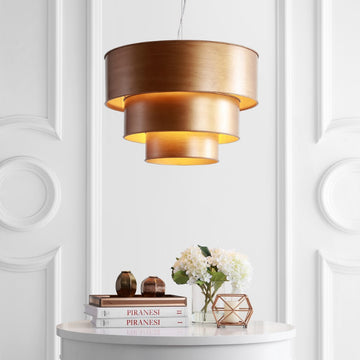 A trio of concentric rings painted gold cascade to create the beautiful shapely effect of this pendant light. Whether for a high traffic area like an entry or over a round dining table, or as a statement maker in a bathroom of over a staircase, this sleek pendant is the perfect alternative to an opulent chandelier. Simple and contemporary, we love seeing designers pair it with traditional and contemporary furnishings to truly master the mix.