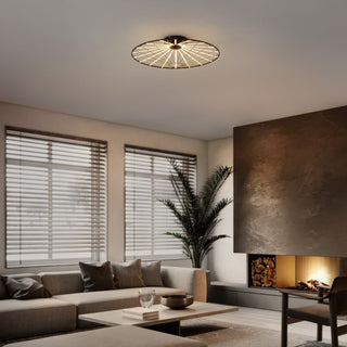 Ambros 23.5" Modern Industrial Metal Dimmable Stripe Half-Cage Integrated LED Flush Mount