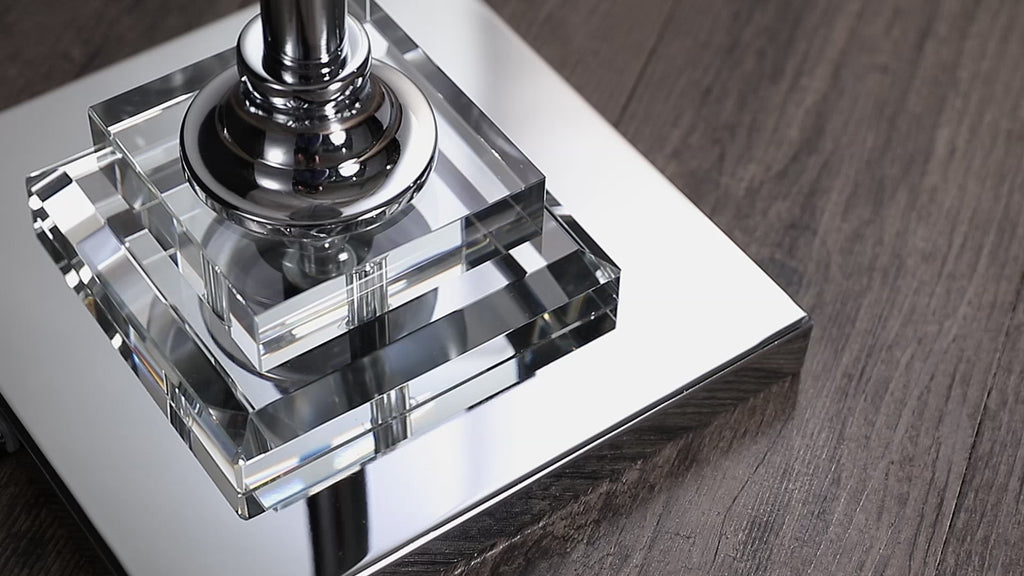 - This chrome floor lamp with faceted crystal accents in a classic scale fits perfectly beside a sofa or chair for extra light