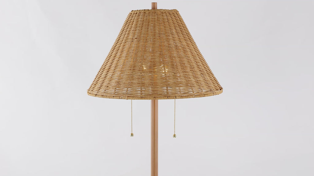 Our mid-century-inspired rattan floor lamp has a modern, conical shade that adds tropical chic to any room. Use two LED bulbs to provide bright light for reading, or light just one for a moody ambiance. This classic lamp adds a retro touch to the living room, bedroom, or home office.