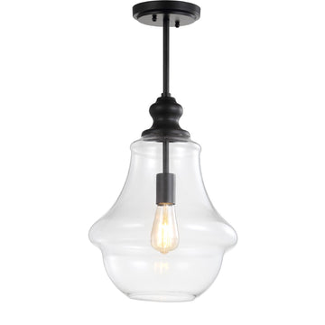 We love the combination of a striking black body and the glass shade in this pendant--a classic piece suitable for any style. With an adjustable drop, it can also look semi-custom, adjusting to your ceiling height. Perfectly suited for highly trafficked areas like kitchens and foyers.