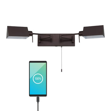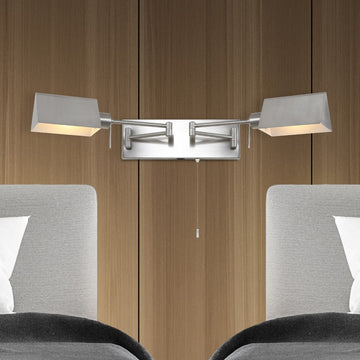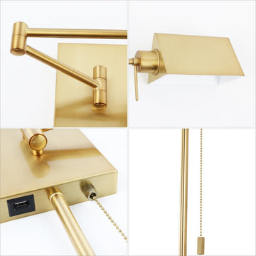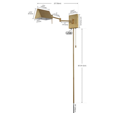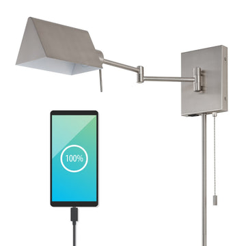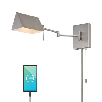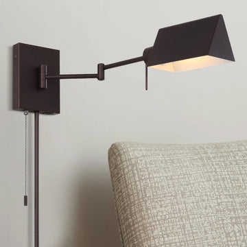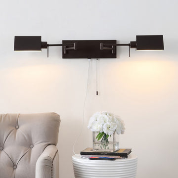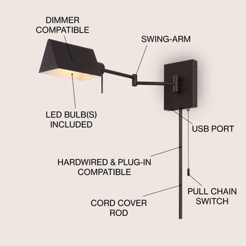 Arlo Farmhouse Industrial Single Swing Arm Plug-In or Hardwired Iron LED Wall Sconce with Pull-Chain