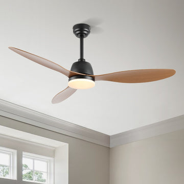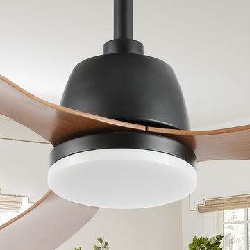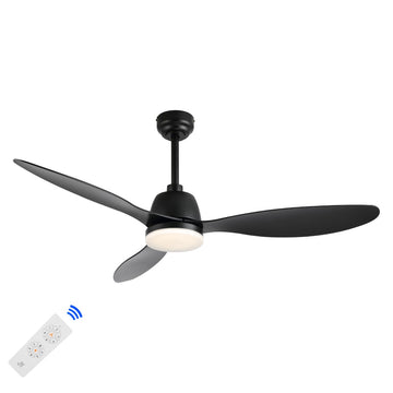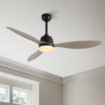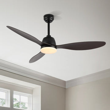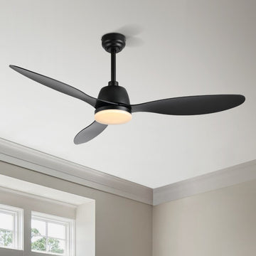 The all-black body and fan blades combined with the frosted LED light cover create a low-key, modern look