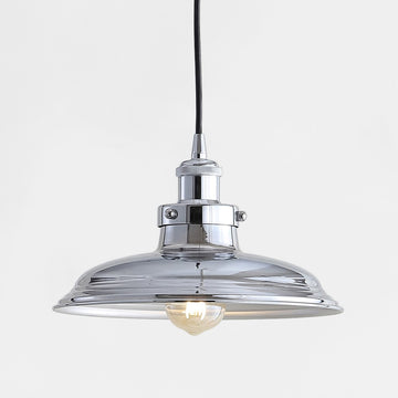 - Suitable for ceilings up to 12 feet, this adjustable pendant has a metal shade and six feet of cord