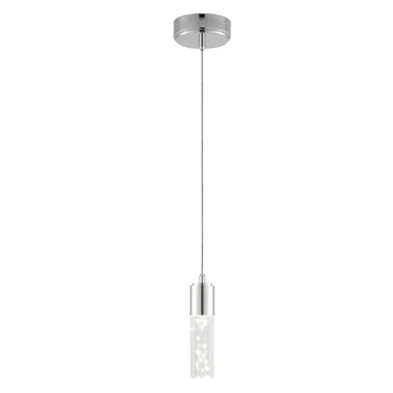 This small contemporary pendant light dresses up your kitchen with sparkling chrome and acrylic. Cascading bubbles give the acrylic cylinder shade a hint of glamor. Hang two or three in a row over a kitchen island; use several over a long serving bar, or create drama by mixing different heights over a dining table. These adjustable pendants are the ideal accent for a modern, glam interior.