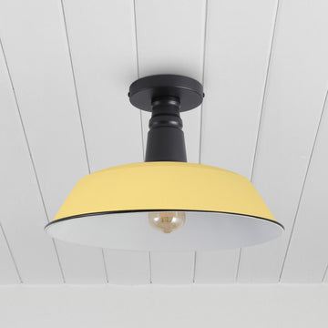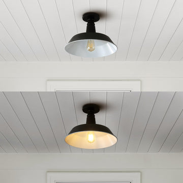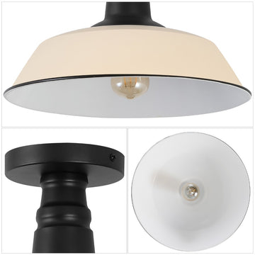 - Add vintage charm to any room with this ceiling light's wide metal shade and two-tone color scheme in classic white and black