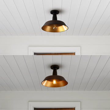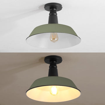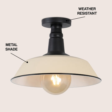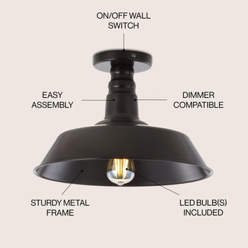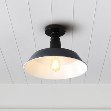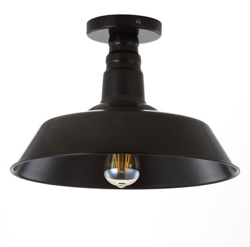 This vintage-inspired metal ceiling light is ideal for your modern farmhouse, rustic kitchen or industrial design - indoors or out. Features an Edison-style LED bulb inside a painted metal shade, accented by a decorative post. This ceiling fixture is perfect for the porch, entry, kitchen, bedroom, or hallway.