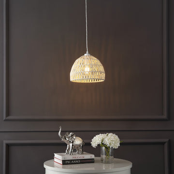 Campana 20" Bohemian Modern Woven Rattan/Iron LED Pendant