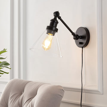 With its clear glass shade, this adjustable wall light adds a modern farmhouse vibe to a bedroom or living room. An LED Edison bulb gives plenty of bright light. The oil-rubbed bronze finish blends with almost any decor. This light's smaller size fits nicely over a sofa or bed for reading; use it in the kitchen too.