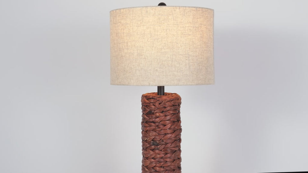 Prized for its beautiful warm tones of beige and hand-braided by skilled artisans, the cylinder bases of this pair of table lamps are completely wrapped in dried sea grass. Often used in baskets, sea grass makes a casual statement while adding texture to your surfaces. Finished in a matching finial and natural linen gray shade, it's an instant coastal classic.