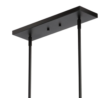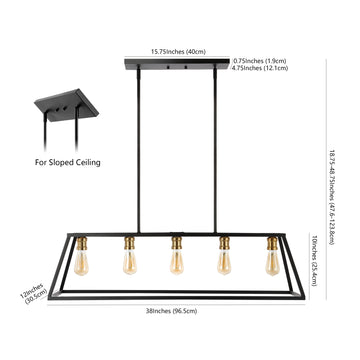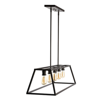 Perfectly sized for over a kitchen island, kitchen table or cottage dining room, this pendant lantern is only about four feet long. The simple black metal frame features five Edison-style LED bulbs for an industrial touch. This versatile linear pendant is ideal for modern, minimalist dining rooms as well as rustic, industrial spaces.