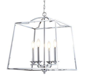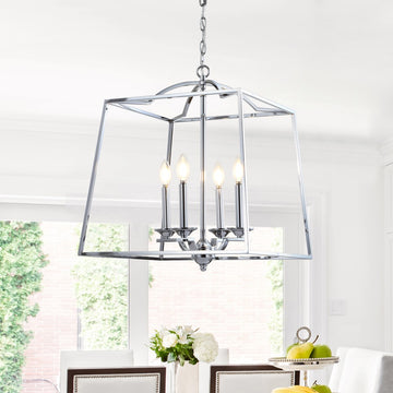 Elegant in its simplicity, this chrome lantern pendant is fabulous in a modern foyer or hung as a pair over a kitchen island. Boasting three bulbs, you can select to use incandescent (40W), CFL (13W), or LED (9W) bulbs for the warmth of glow and energy efficiency you desire. We love how the classic shape was update by removing the glass siding, allowing the fixture to put less weight strain on your ceiling and emitting maximum glow without the glare.