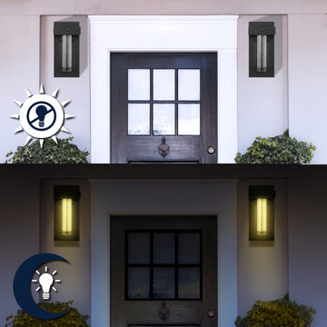 Horizone 5.5" Minimalist Industrial Iron/Glass Seeded Glass with Dusk-to-Dawn Sensor Integrated LED Outdoor Sconce