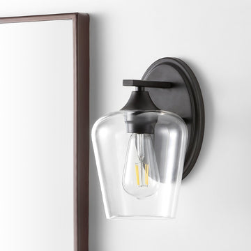 Elevate your urban apartment, cottage or farmhouse with our versatile take on a classic wall light. The included LED bulb casts a warm glow, providing plenty of light. The clear glass bell shade and oil rubbed bronze finish add elegant vintage style to your bath vanity, or above a kitchen sink.