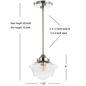 Kurtz School House Adjustable Drop Metal/Glass LED Pendant