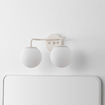 Bring on the vintage Parisian flair with our classic bistro wall light. Frosted glass globes provide a warm, inviting glow, while clean lines and a stylish finish add modern French bistro charm to your bath vanity, kitchen, hallway, or entryway.