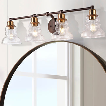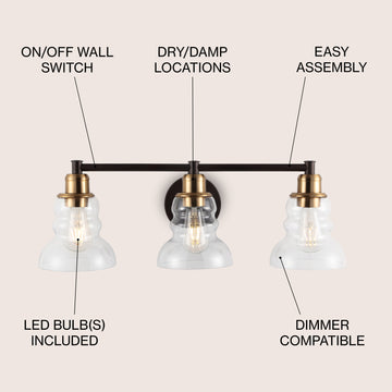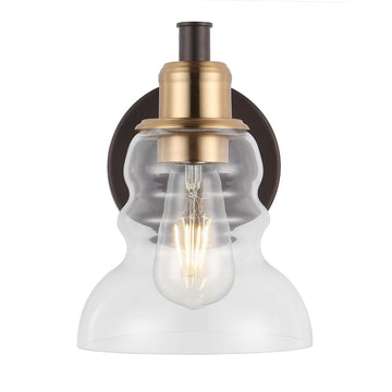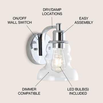 Elevate your urban interior with our modern take on a classic wall light. The industrial Edison-style LED bulb casts a warm glow, providing plenty of light. A clear glass bell shade adds elegant vintage style to your bath vanity, kitchen, hallway or entry.