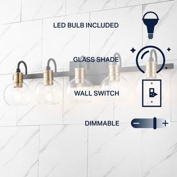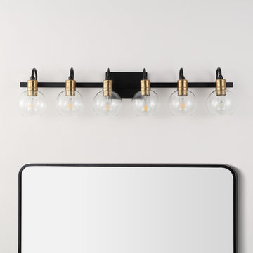 Bring on the vintage Parisian flair with our arched wall light. A single/two/three/or four Edison-style LED bulb casts a warm glow. Brass accents and a clear glass globe add French bistro style to your bath vanity, kitchen, hallway or entry.