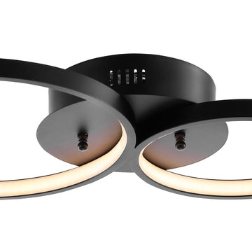 A contemporary statement for the kitchen, dining room, bedroom, living room or office, this unique LED pendant is modern art for your ceiling. Minimalist design has sleek black metal circles with energy-saving, integrated LEDs that last up to 15 years. Providing plenty of bright, clear light, this flush-mounted light fixture is versatile enough for any modern space.
