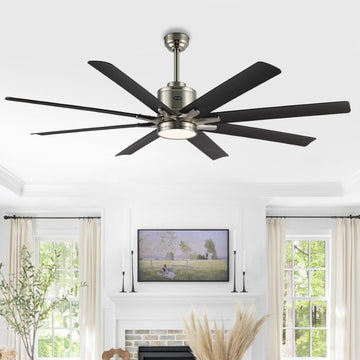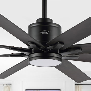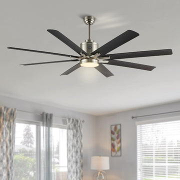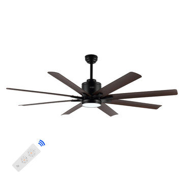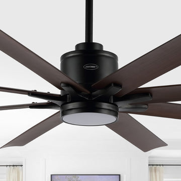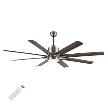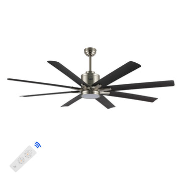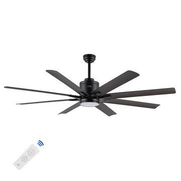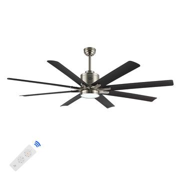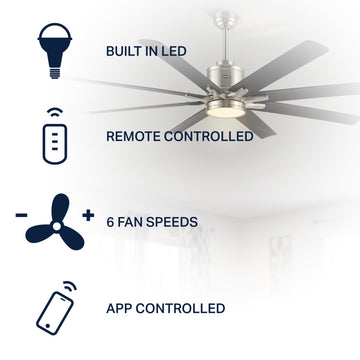 Octo 66" Contemporary Industrial Iron/Plastic Mobile-App/Remote-Controlled 6-Speed Ceiling Fan with Integrated LED Light