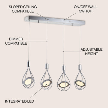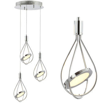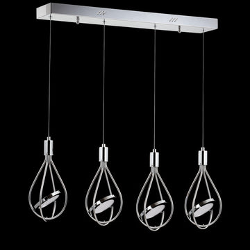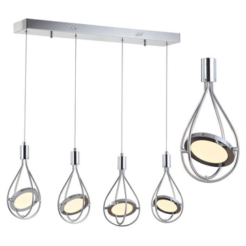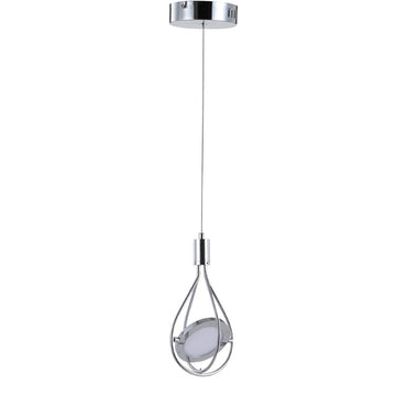 Make a statement in your contemporary kitchen, dining room, living room or bedroom with this one-of-a-kind LED pendant. One integrated-LED disc is suspended by adjustable cords - you control the height and direction of the light. Finished in sparkling chrome.