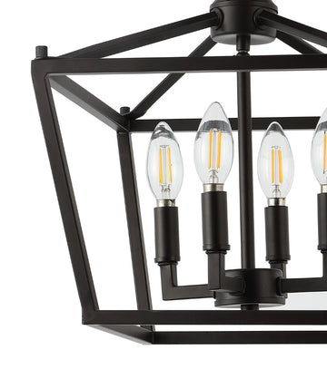 Perfect for low ceilings, our open lantern is ideal for your farmhouse, modern cottage or coastal home. This timeless design features four LED candelabra bulbs inside a black semi-flush frame. Enjoy this small ceiling fixture in the kitchen, bedroom, entry, hallway or closet.