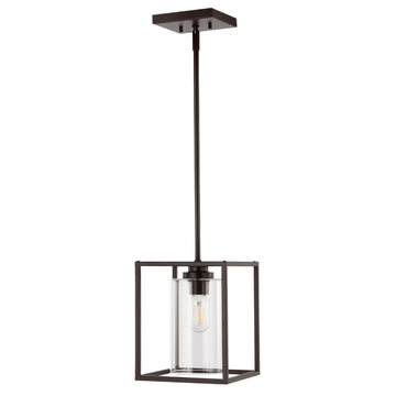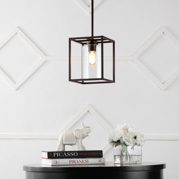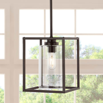 This square farmhouse pendant has a vintage bronze finish and is splendidly sized for a kitchen island or dining room