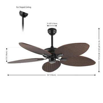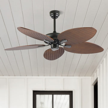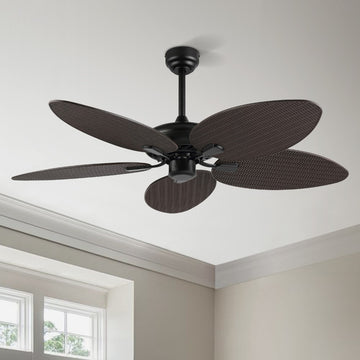 Raffles 52" Bohemian Industrial Iron/Plastic Mobile-App/Remote-Controlled 6-Speed Palm Blade Ceiling Fan