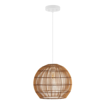 Modern design meets traditional craftsmanship in our woven globe pendant. A single LED bulb provides bright, warm light. Made from natural rattan woven onto a sturdy metal frame, this ceiling fixture adds a Bohemian touch to your living room, bedroom, or dining room. Plug in or hardwire.